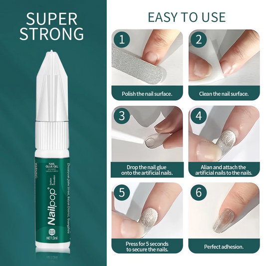 3ml Strong Nail Glue with Quick Nail Glue Remover Professional Nail Art Long-Lasting Glue for Nail Extension Home DIY
