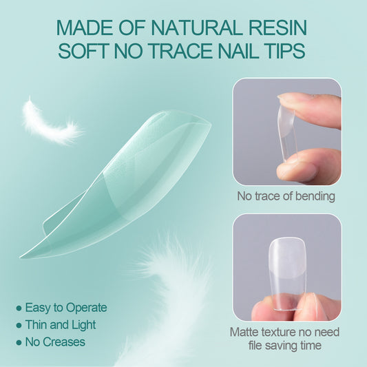 Skin Tone Gel x Nail Tips Set Natural Fit Pre-applied Tip Primer and Base Coat Full Cover Soft Gel False Nails 140 Pcs