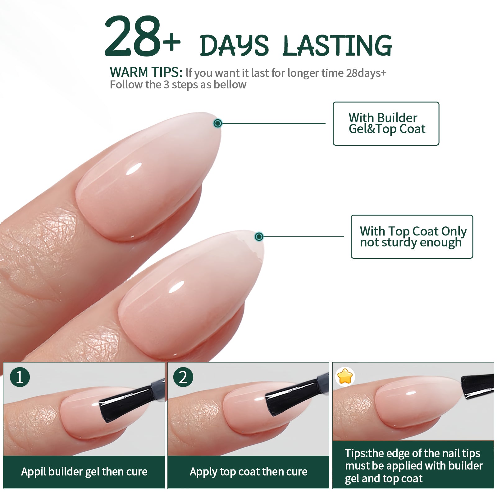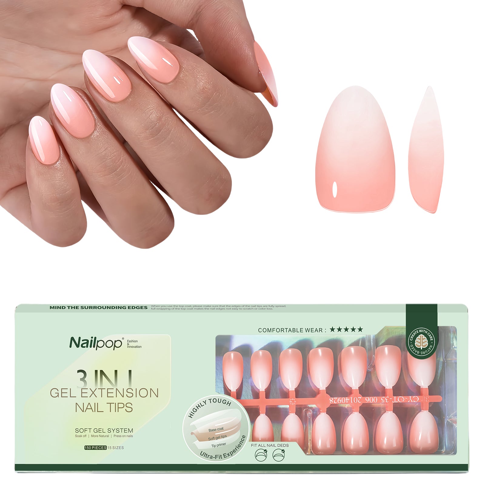 Nailpop Nude White Ombre Press on Nails Medium Almond Fake Nails Gradient Glossy Soft Gel Nail Tips Acrylic Nails for Manicure